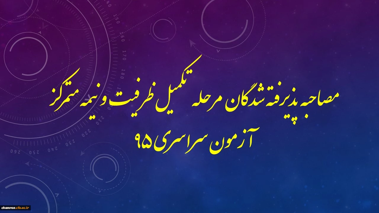 امتیاز دهید : مصاحیه پذیرفته شدگان مرحله تکمیل ظرفیت و نیمه متمرکز آزمون سراسری 95 2 دوشنبه 29 آذر 1395 ساعت 15:10
