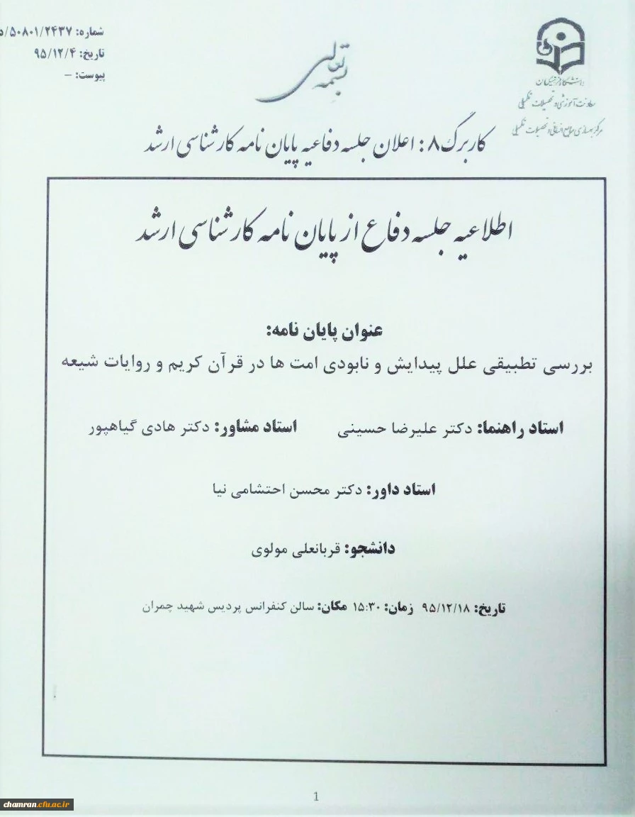 امتیاز دهید : قابل توجه استادان ودانشجویان گرامی "جلسه دفاعیه پایان مه کارشناسی ارشد" 3 دوشنبه 16 اسفند 1395 ساعت 10:54