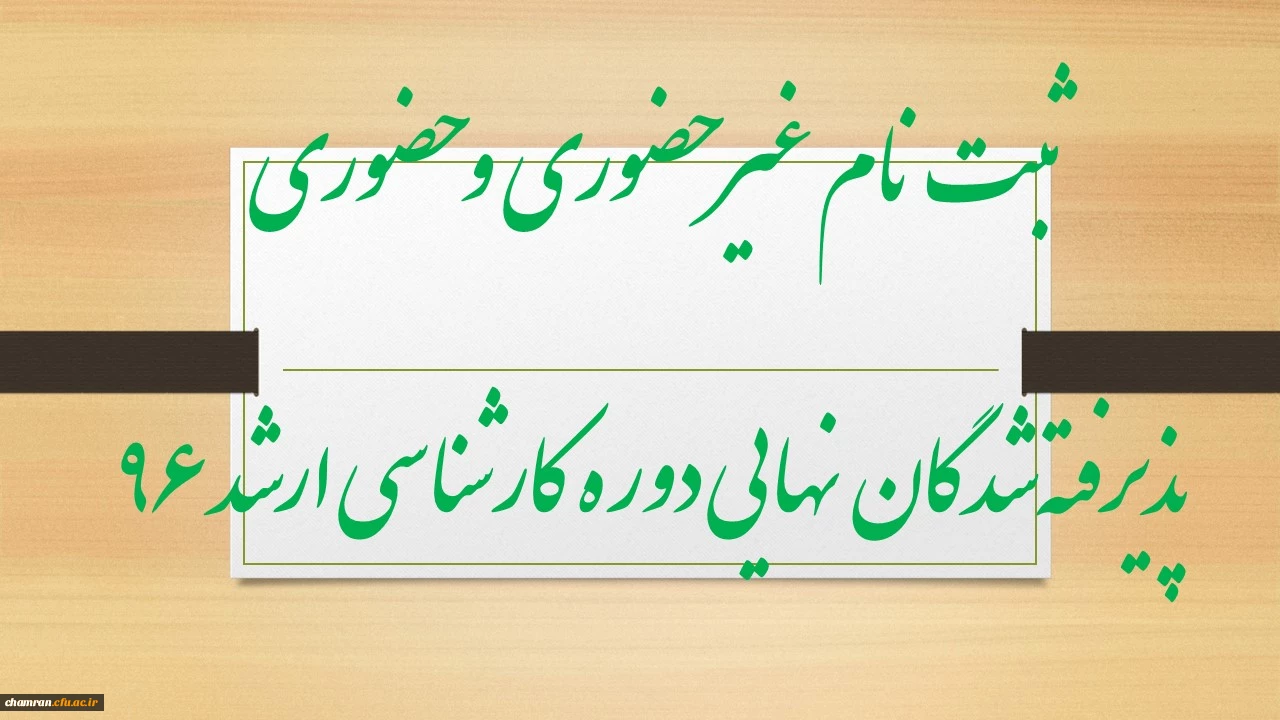 امتیاز دهید : ثبت نام غیر حضوری و حضوری پذیرفته شدگان نهایی دوره کارشناسی ارشد ۹۶ 2 دوشنبه 13 شهریور 1396 ساعت 10:44