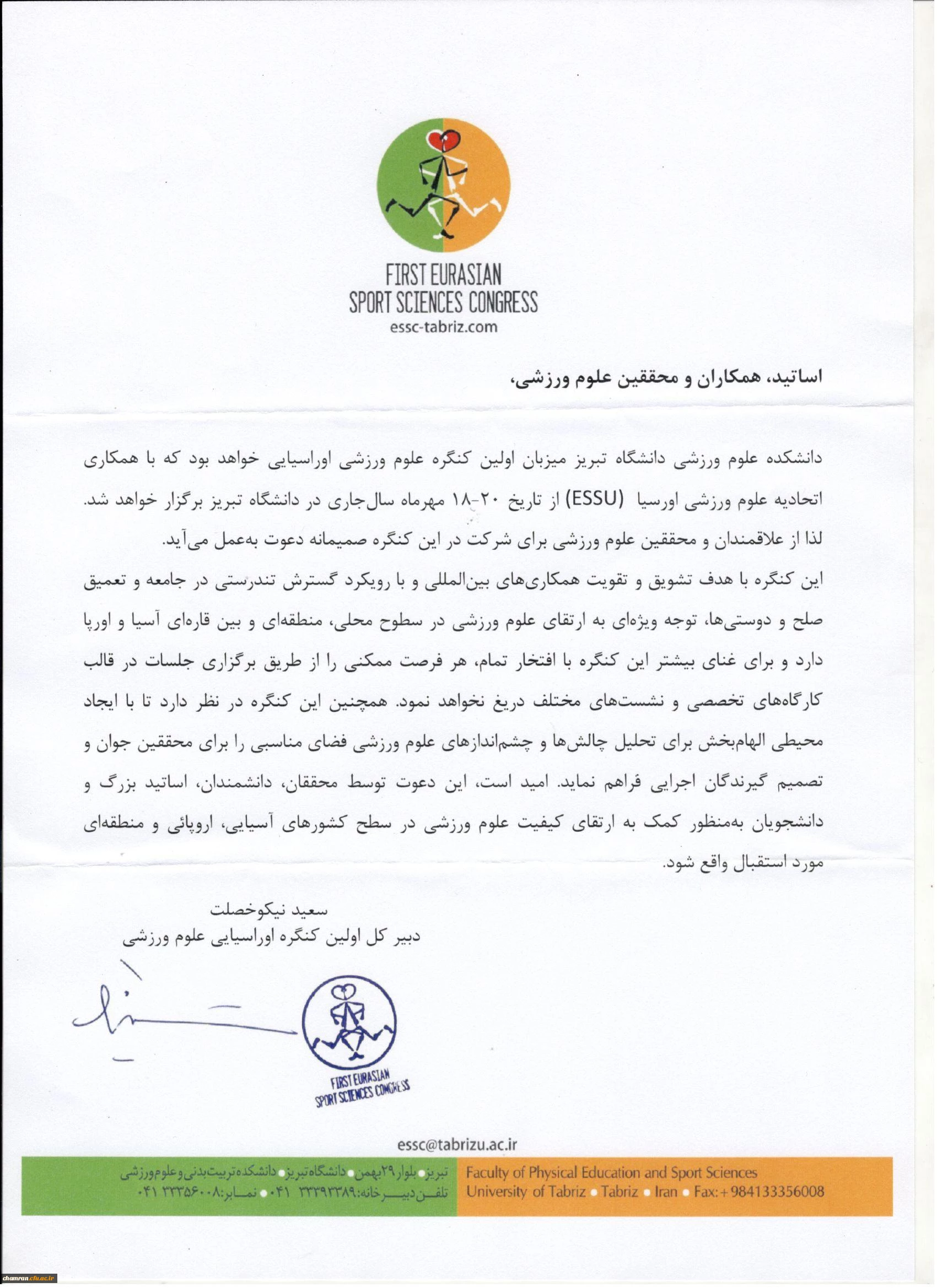 برگزاری اولین کنگره اوراسیایی علوم ورزشی 3