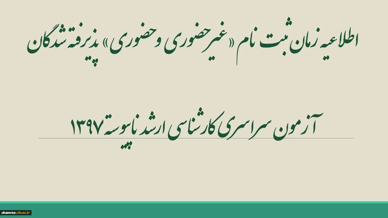 اطلاعیه زمان ثبت نام «غیرحضوری و حضوری» پذیرفته شدگان آزمون سراسری کارشناسی ارشد ناپیوسته ۱۳۹۷ 2