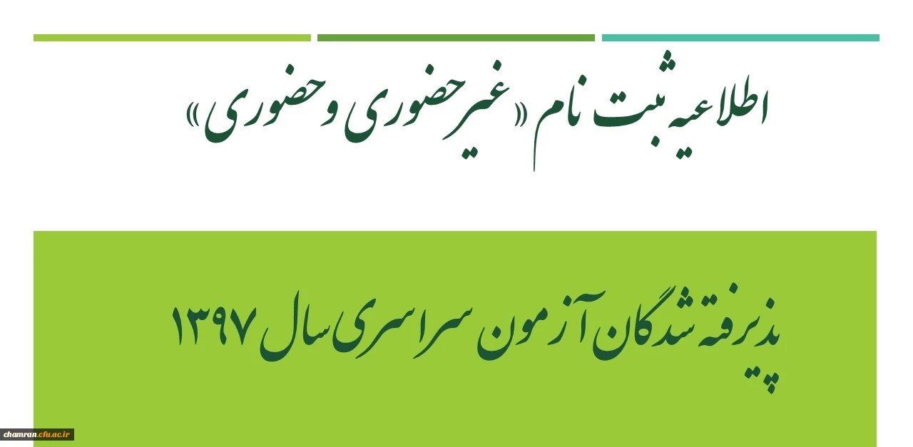 اطلاعیه ثبت نام «غیرحضوری و حضوری» پذیرفته شدگان آزمون سراسری سال ۱۳۹۷ 2