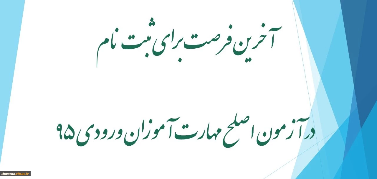 امتیاز دهید : آخرین فرصت برای ثبت نام در آزمون اصلح مهارت آموزان ورودی ۹۵ 2 سهشنبه 13 آذر 1397 ساعت 15:45