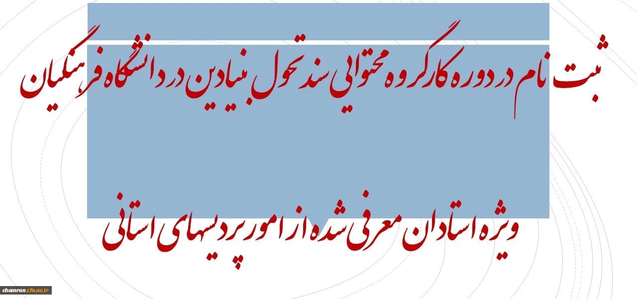 ثبت نام در دوره کارگروه محتوایی سند تحول بنیادین در دانشگاه فرهنگیان ویژه استادان معرفی شده از امور پردیسهای استانی 2