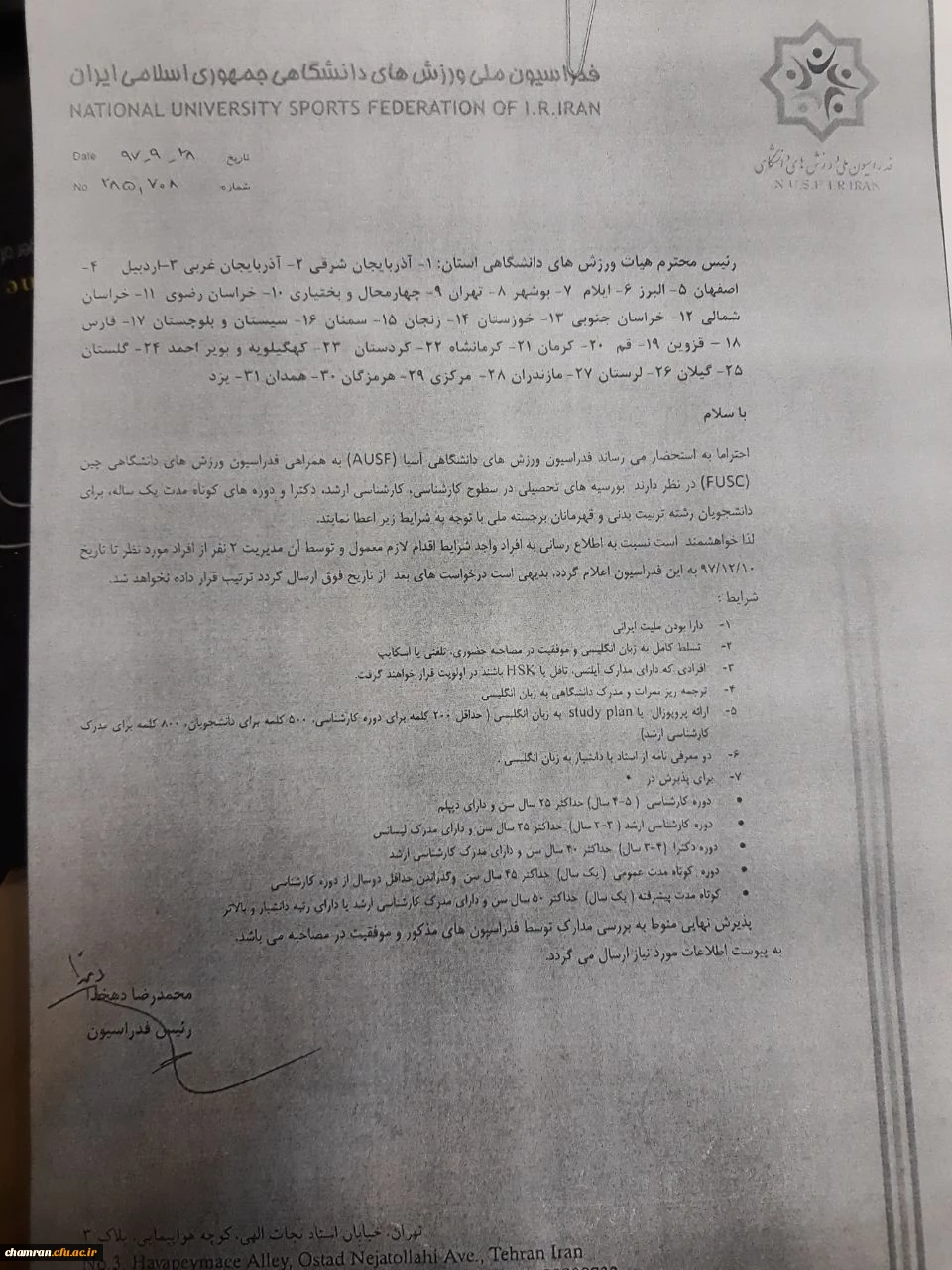 بورسیه های تحصیلی رشته تربیت بدنی و علوم ورزشی 2