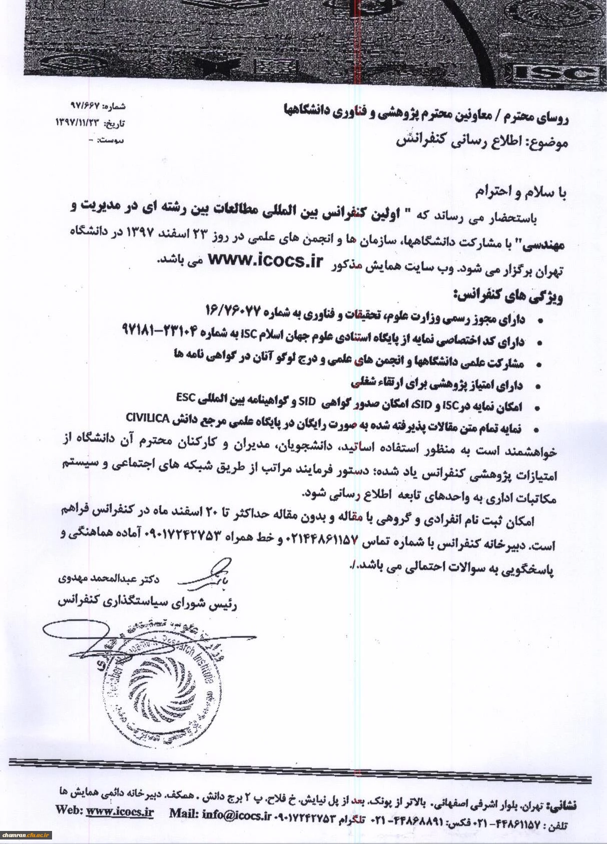 فراخوان کنفرانس بین المللی مطالعات بین رشته ای 2