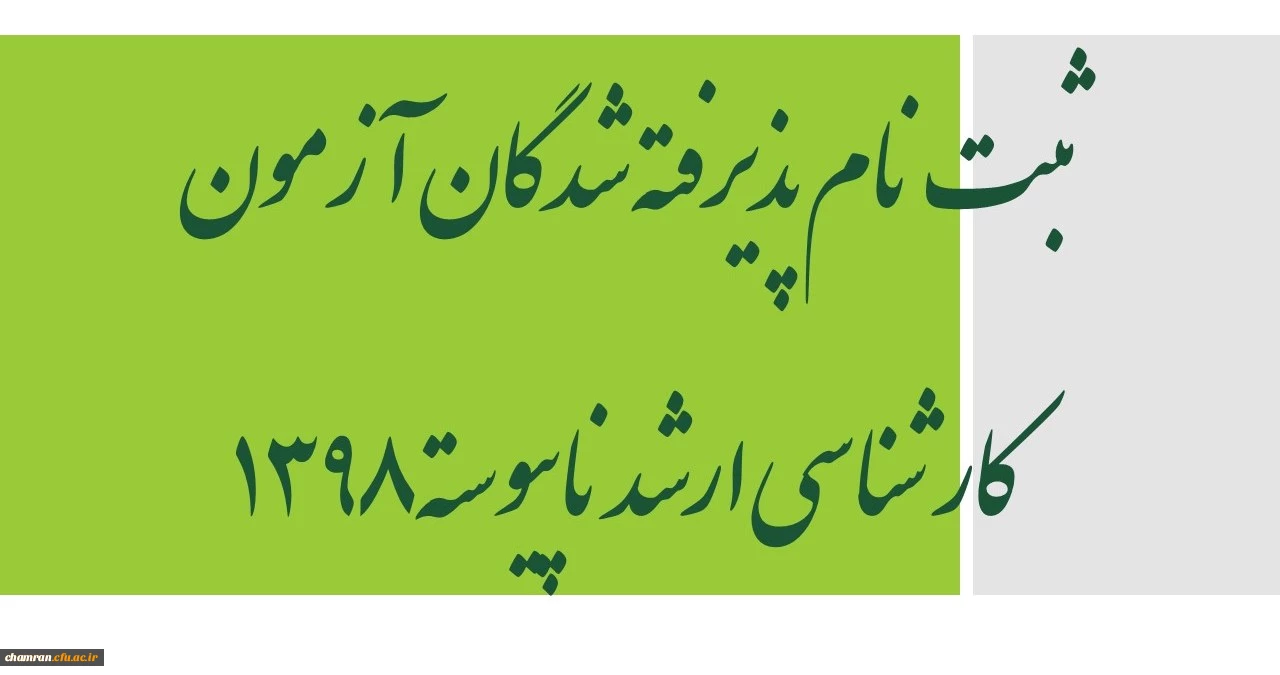 امتیاز دهید : ثبت نام پذیرفته شدگان آزمون کارشناسی ارشد ناپیوسته ۱۳۹۸ 2 چهارشنبه 27 شهریور 1398 ساعت 9:01