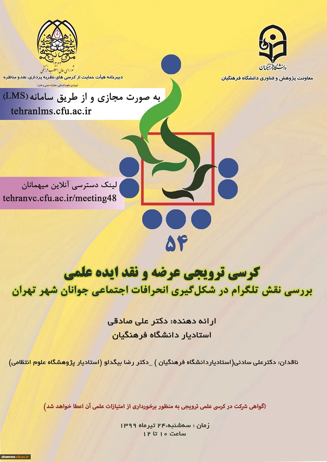 امتیاز دهید : بررسی نقش تلگرام در شکل گیری انحرافات اجتماعی جوانان شهر تهران 2 دوشنبه 23 تیر 1399 ساعت 10:02