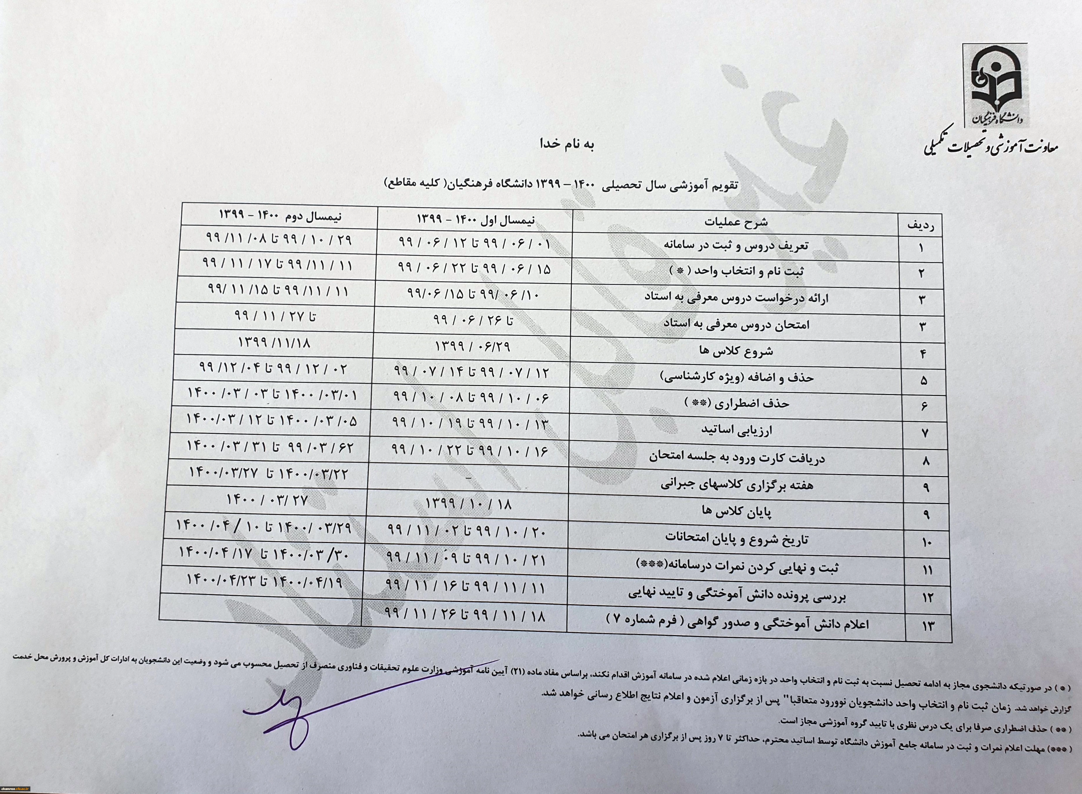 تقویم آموزشی سال تحصیلی ۱۴۰۰–۱۳۹۹ 2