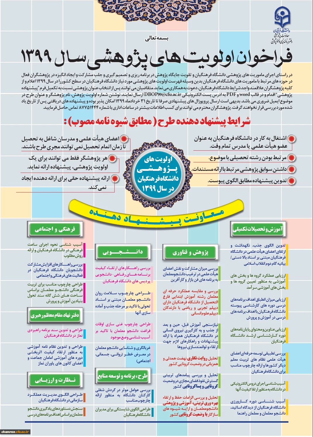 فراخوان اولویت های پژوهشی سال ۱۳۹۹ 2