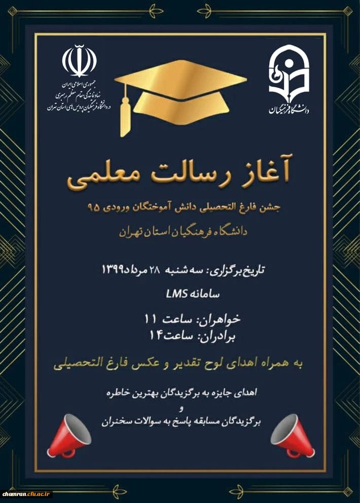 امتیاز دهید : جشن فارغ التحصیلی دانش آموختگان ورودی ۹۵ دانشگاه فرهنگیان استان تهران 2 دوشنبه 27 مرداد 1399 ساعت 8:27