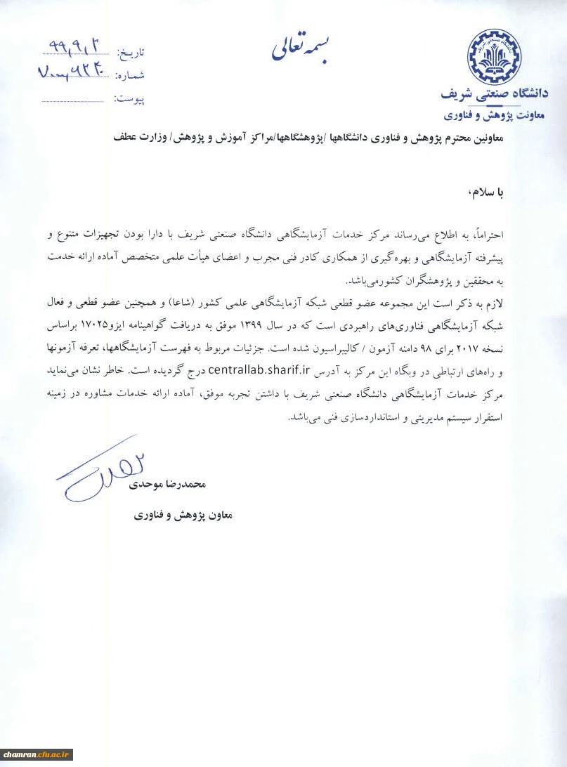 امتیاز دهید : آمادگی مرکز خدمات آزمایشگاهی دانشگاه صنعتی شریف جهت ارائه خدمات 2 یکشنبه 16 آذر 1399 ساعت 9:48