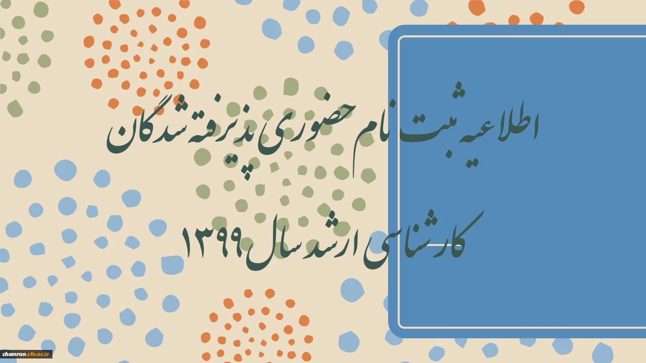 امتیاز دهید : اطلاعیه ثبت نام حضوری پذیرفته شدگان کارشناسی ارشد سال ۱۳۹۹ 2 یکشنبه 30 آذر 1399 ساعت 8:33