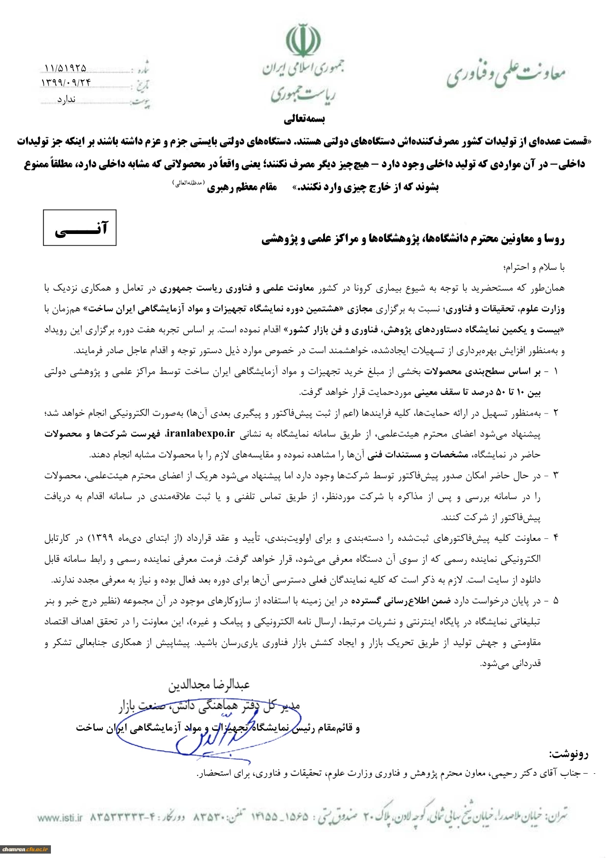 امتیاز دهید : تسهیلات ایجاد شده در نمایشگاه تجهیزات و مواد آزمایشگاهی ایران ساخت 3 سهشنبه 16 دی 1399 ساعت 12:41