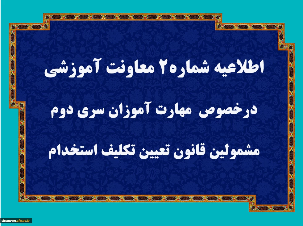 امتیاز دهید : قابل توجه مهارت آموزان سری دوم مشمولین قانون تعیین تکلیف استخدام 3 چهارشنبه 18 فروردین 1400 ساعت 20:11