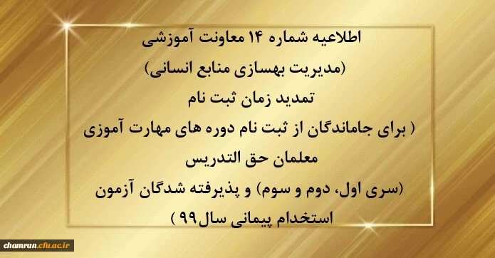 تمدید زمان ثبت نام ( برای جاماندگان از ثبت نام دوره های مهارت آموزی معلمان حق التدریس (سری اول، دوم و سوم) و پذیرفته شدگان آزمون استخدام پیمانی سال99) 2