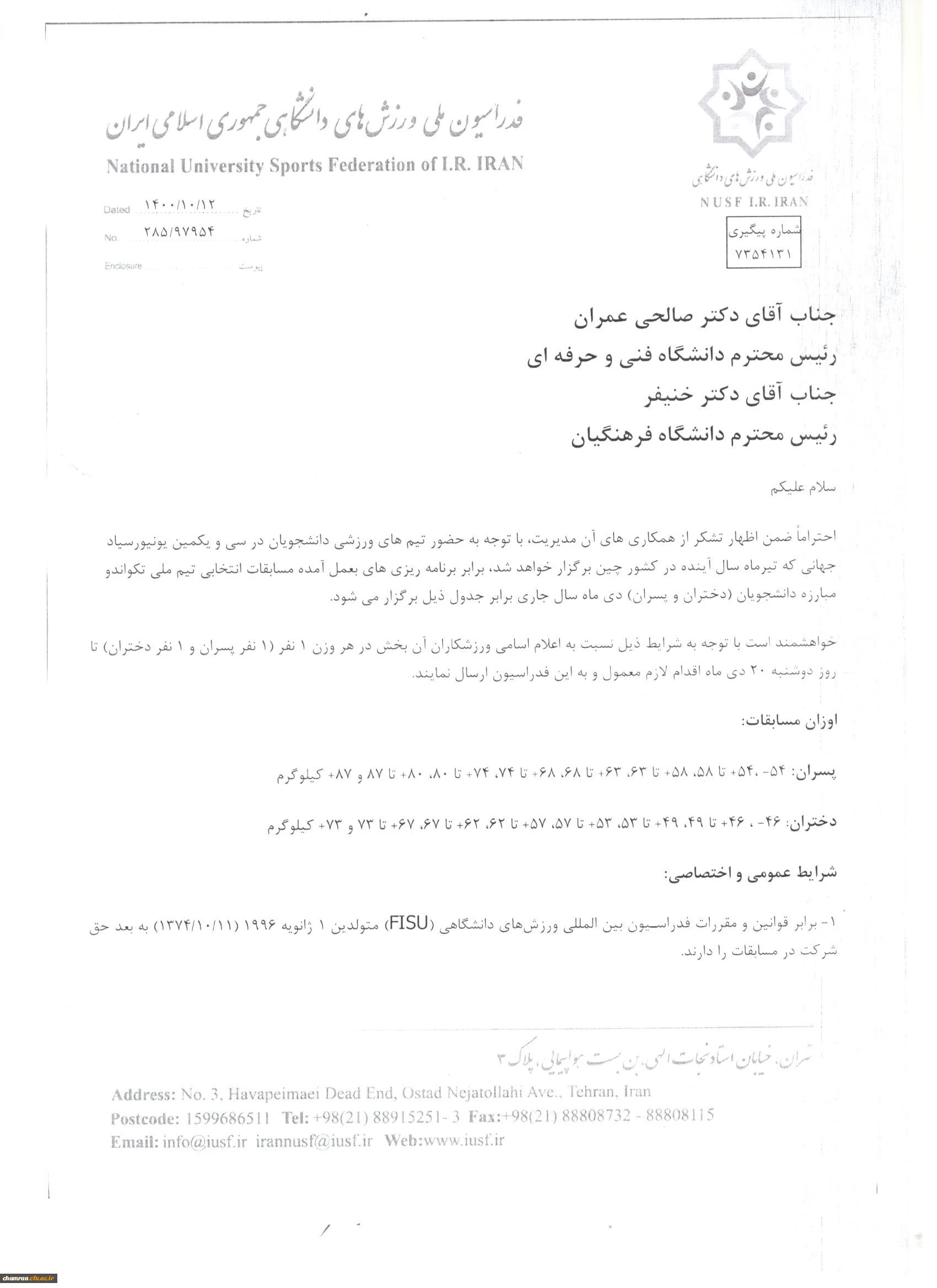 برگزاری مسابقه انتخابی تیم ملی دانشجویی رشته تکواندو 2