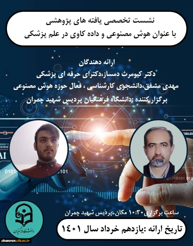 امتیاز دهید : نشست تخصصی یافته های پژوهشی با عنوان هوش مصنوعی و داده کاوی در پزشکی 2 چهارشنبه 11 خرداد 1401 ساعت 9:33