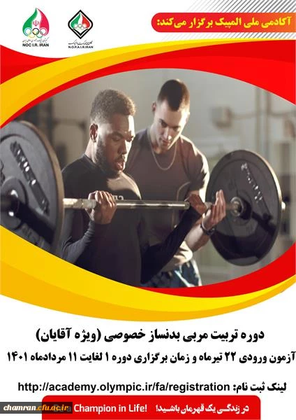 امتیاز دهید : کارگاه نخستین دوره مربیگری خصوصی (ویژه آقایان) آکادمی ملی المپیک ج.ا.ا 2 شنبه 11 تیر 1401 ساعت 13:52