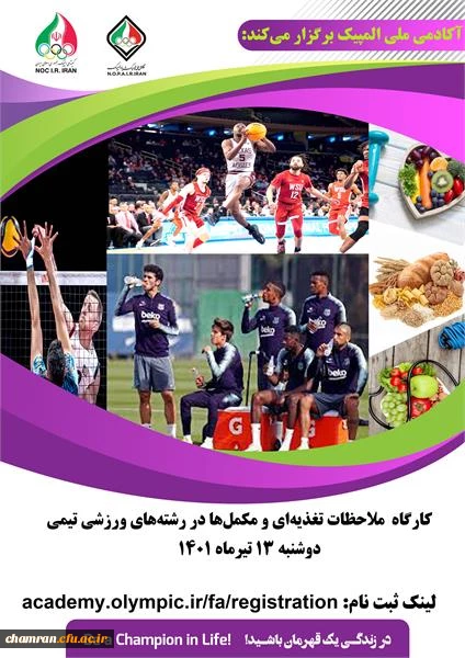 امتیاز دهید : کارگاه آموزشی ملاحظات تغذیه ای و مکمل ها در رشته های ورزشی تیمی آکادمی ملی المپیک ج.ا.ا 2 شنبه 11 تیر 1401 ساعت 13:56