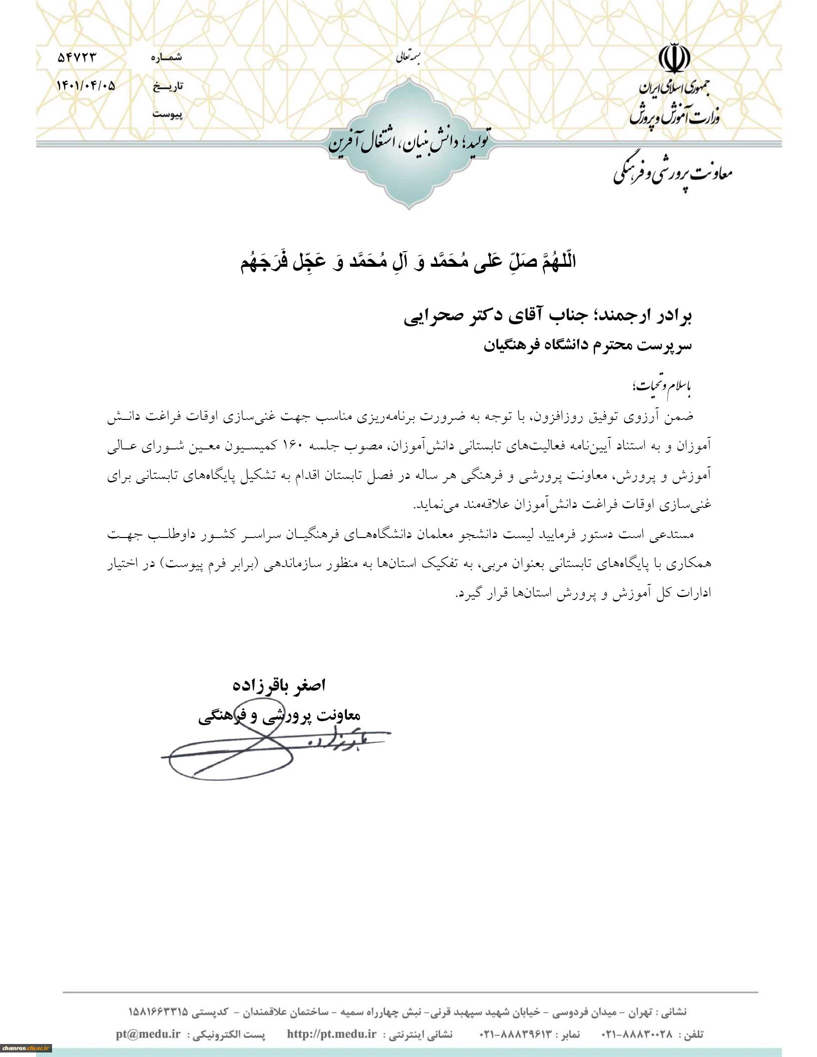 ثبت نام دانشجومعلمان داوطلب همکاری با پایگاههای تابستانی 2