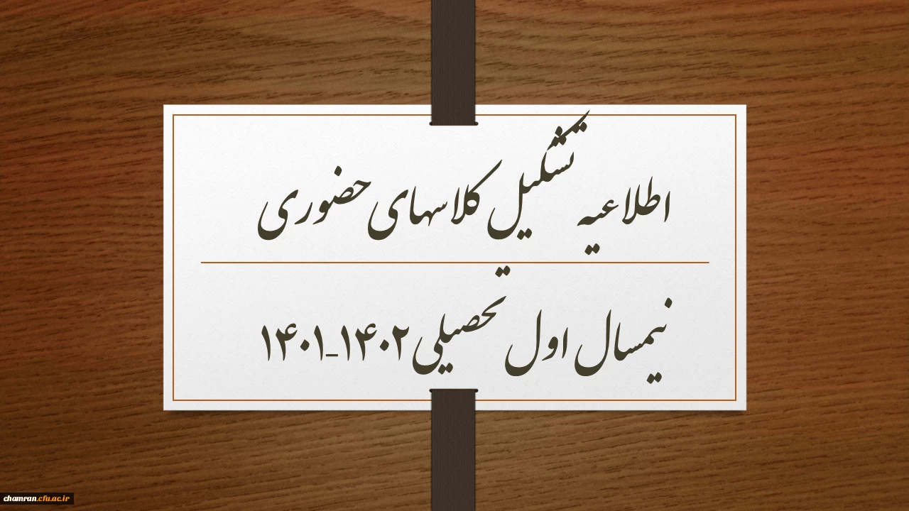 امتیاز دهید : اطلاعیه تشکیل کلاسهای حضوری نیمسال اول تحصیلی ۱۴۰۲–۱۴۰۱ 2 پنجشنبه 14 مهر 1401 ساعت 22:22