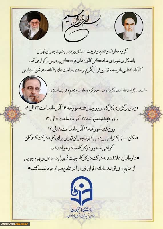گزارش تشکیل کارگاه آشنایی با ترجمه و تفسیر قرآن کریم با محوریت قرار دادن دلالت های آیات متناظر به ساحت های شش گانه تربیتی سند تحول بنیادین آموزش و پرورش 2