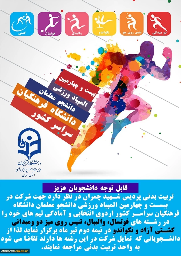امتیاز دهید : اطلاعیه اردوی انتخابی و آمادگی تیم های ورزشی پردیس شهید چمران 2 سهشنبه 13 تیر 1402 ساعت 10:35