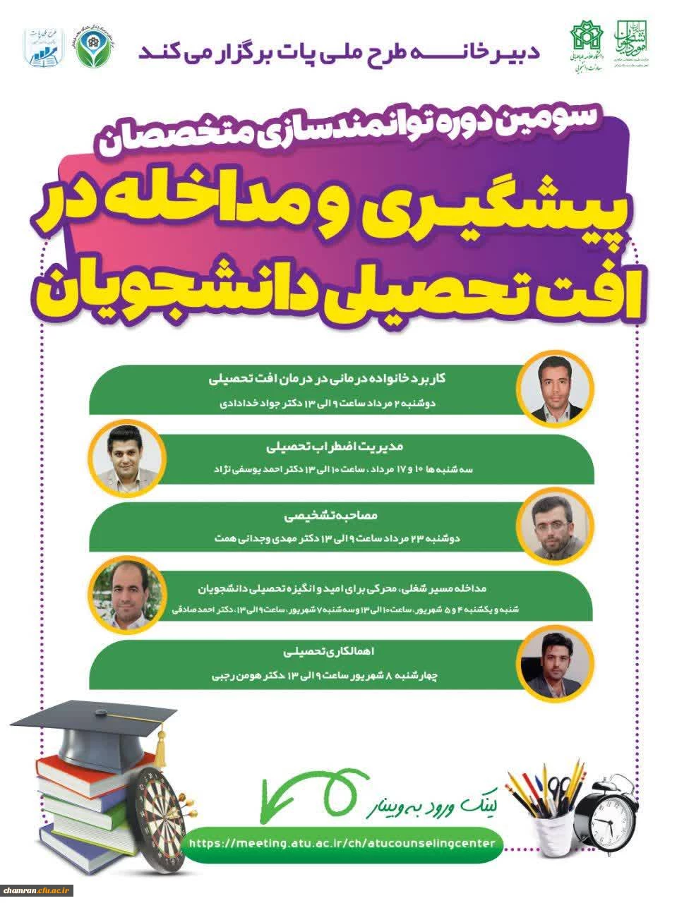 امتیاز دهید : برگزاری دوره توانمندسازی متخصصان مراکز مشاوره دانشجویی (طرح پات) 2 سهشنبه 17 مرداد 1402 ساعت 12:58