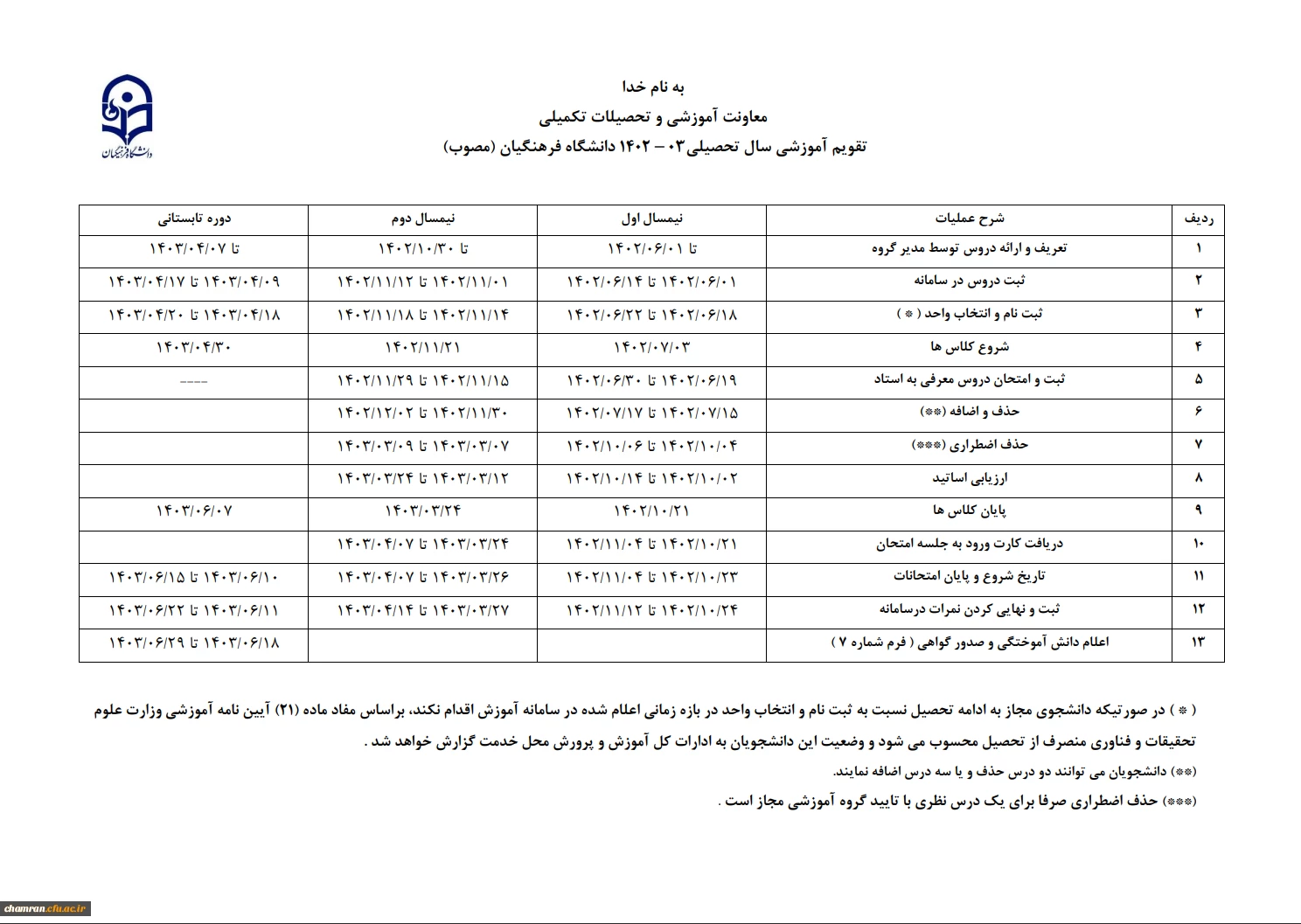 تقویم آموزشی سال تحصیلی ۱۴۰۳-۱۴۰۲ دانشگاه فرهنگیان 2