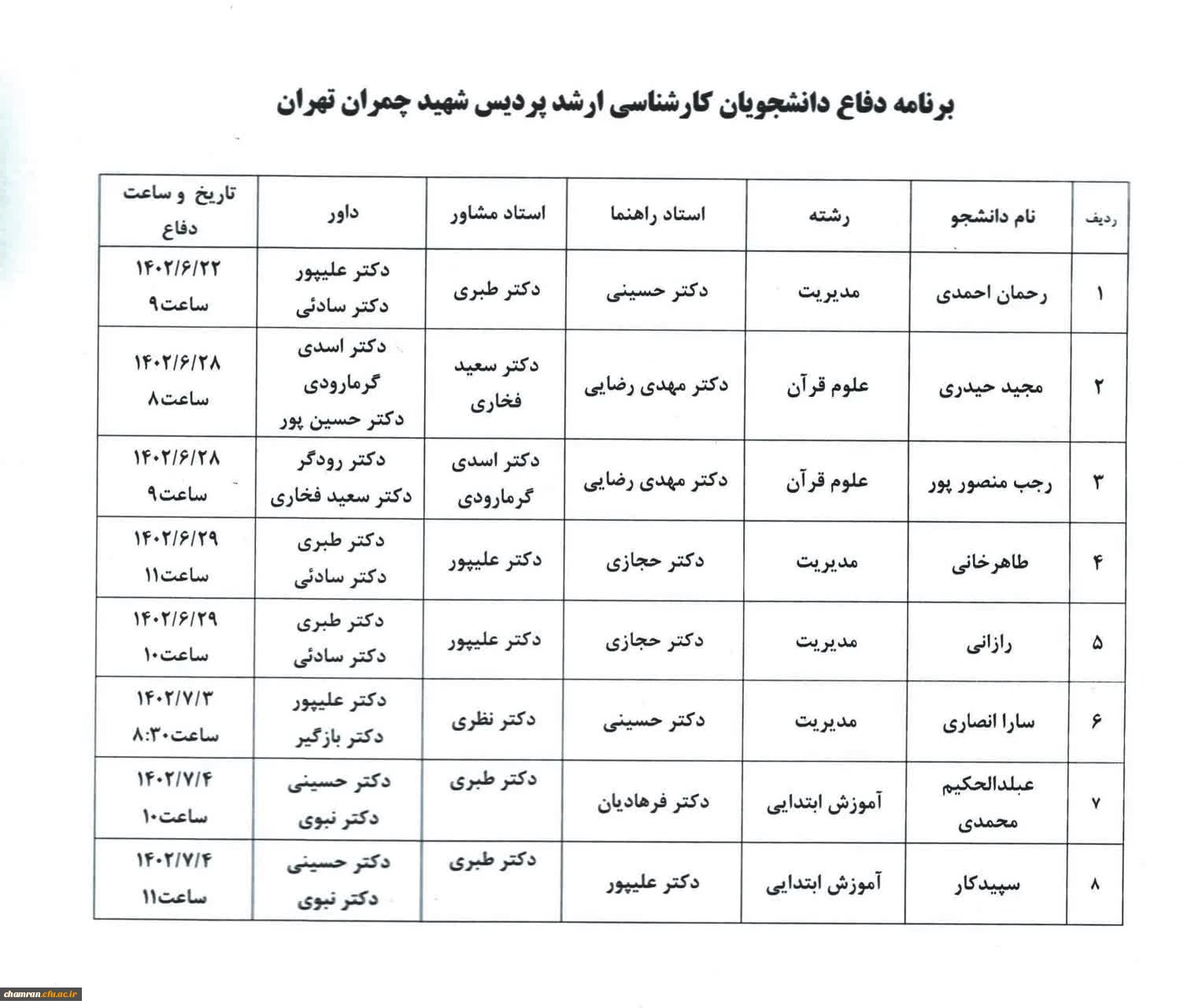 امتیاز دهید : برنامه دفاع دانشجویان کارشناسی ارشد پردیس شهید چمران 2 دوشنبه 20 شهریور 1402 ساعت 16:13