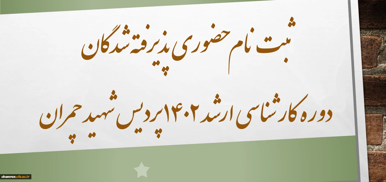 امتیاز دهید : ثبت نام حضوری پذیرفته شدگان دوره کارشناسی ارشد ۱۴۰۲ پردیس شهید چمران 2 یکشنبه 26 شهریور 1402 ساعت 9:49