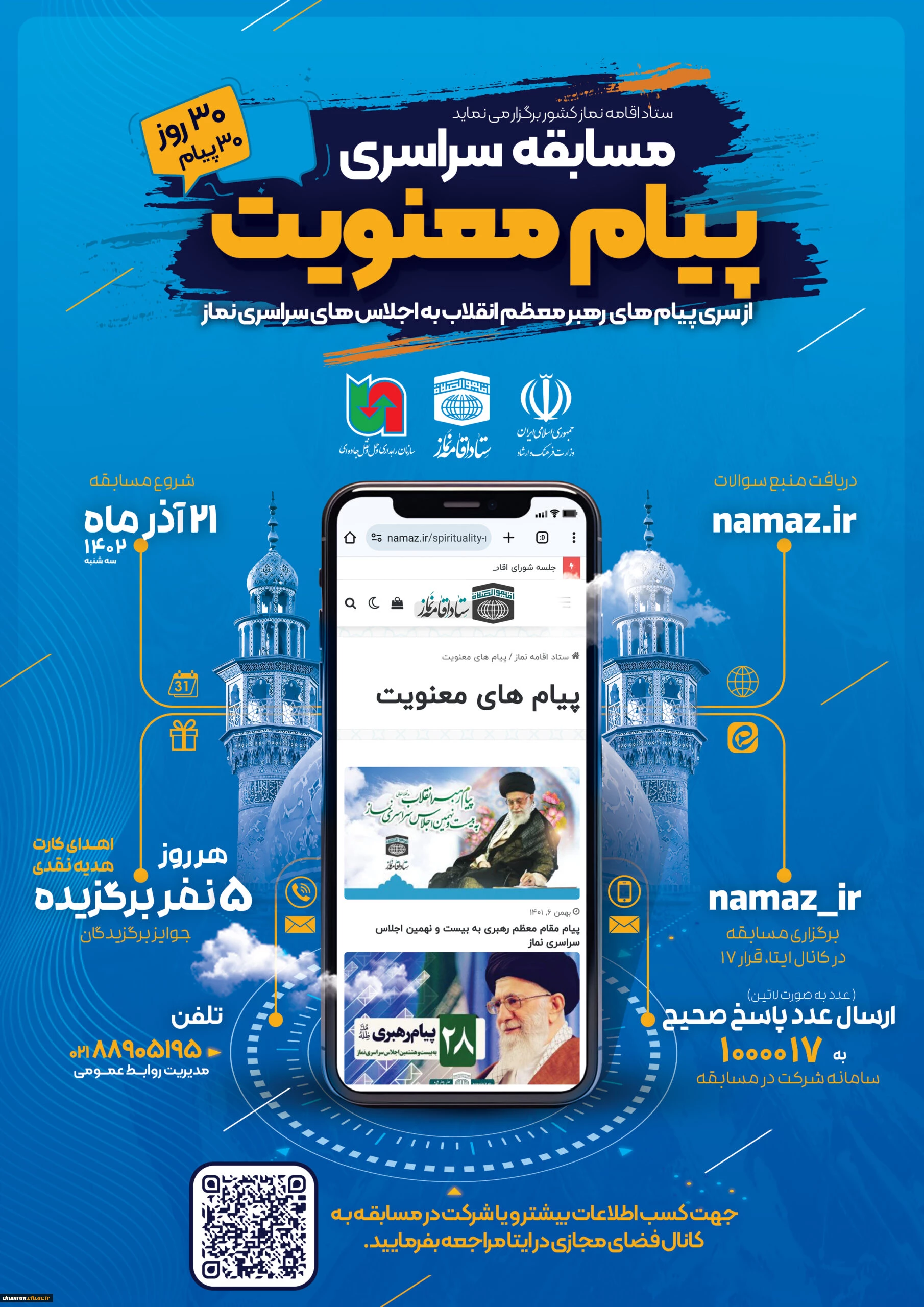 امتیاز دهید : مسابقه سراسری «پیام معنویت» همزمان با برگزاری سی امین اجلاس سراسری نماز 2 سهشنبه 21 آذر 1402 ساعت 11:29