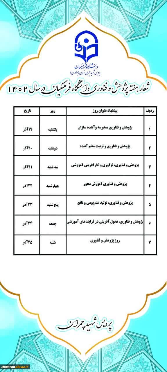 شعار هفته پژوهش و فناوری در دانشگاه فرهنگیان 2
