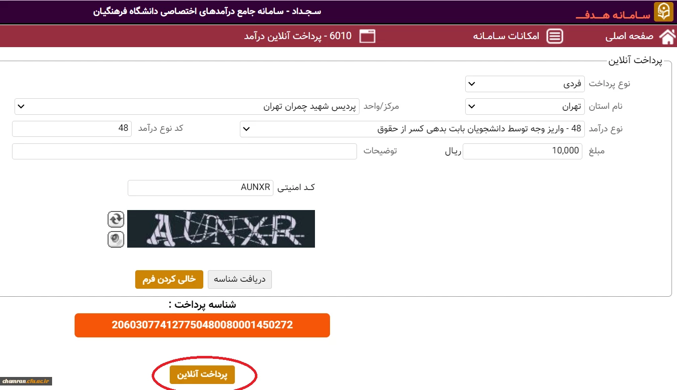 راهنمای واریز وجه توسط دانشجویان بابت بدهی کسر از حقوق (5)