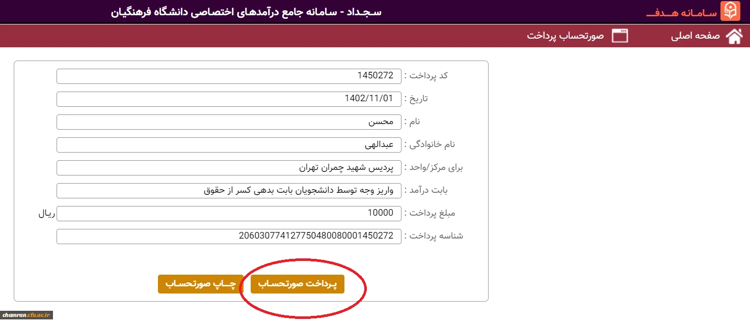 امتیاز دهید : راهنمای واریز وجه توسط دانشجویان بابت بدهی کسر از حقوق (6) یکشنبه 1 بهمن 1402 ساعت 14:54