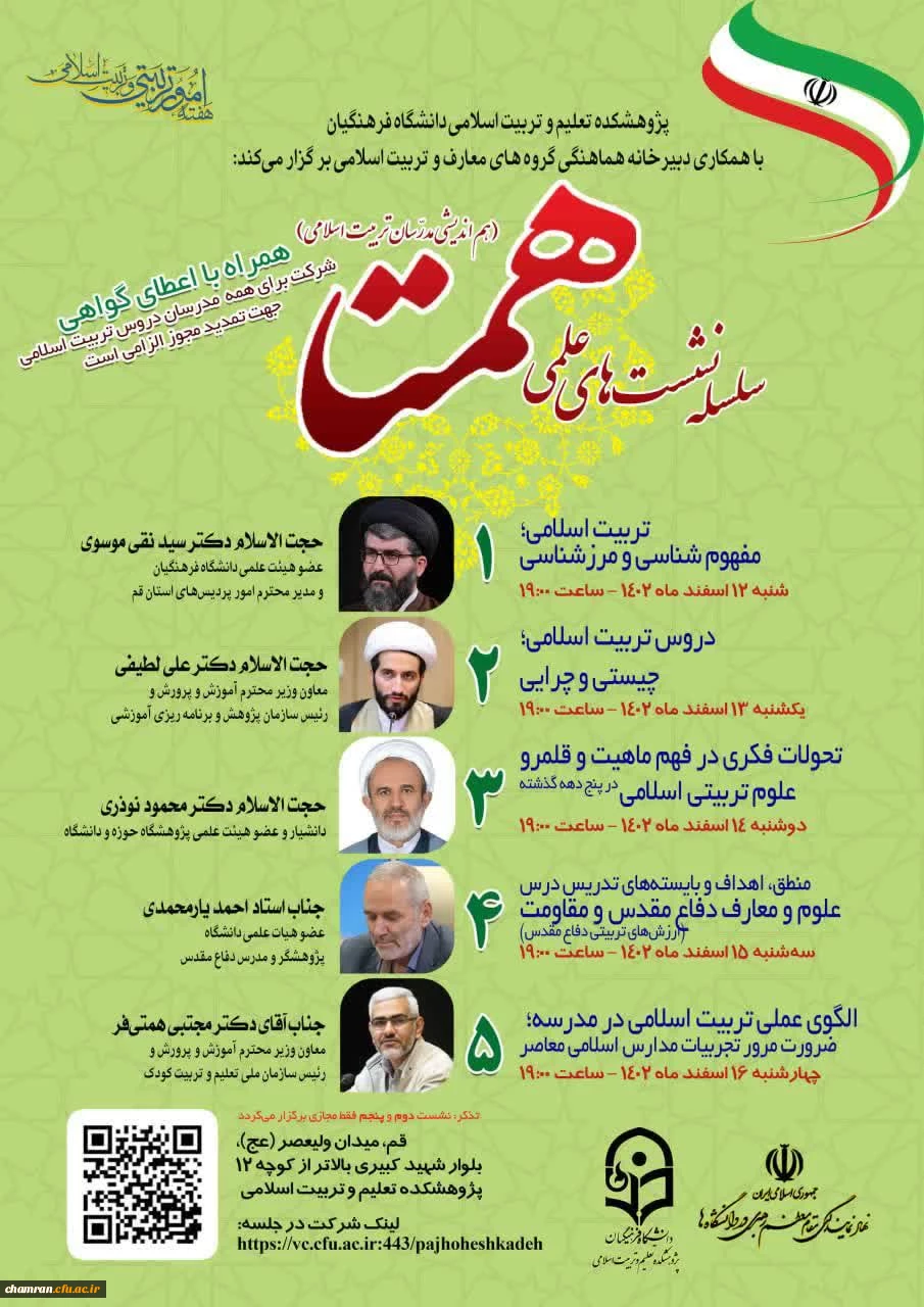 امتیاز دهید : سلسله نشست های علمی همتا (هم اندیشی مدرّسان تربیت اسلامی) 2 شنبه 12 اسفند 1402 ساعت 8:27