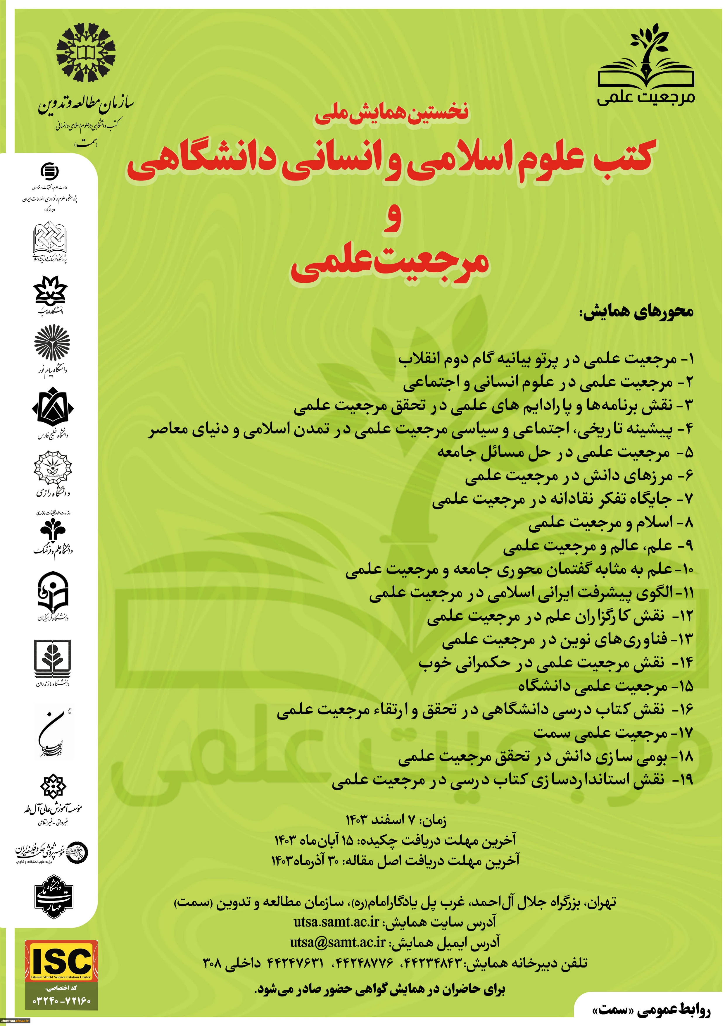 امتیاز دهید : همایش ملی کتب علوم اسلامی و انسانی دانشگاهی و مرجعیت علمی 2 شنبه 25 اسفند 1403 ساعت 13:09