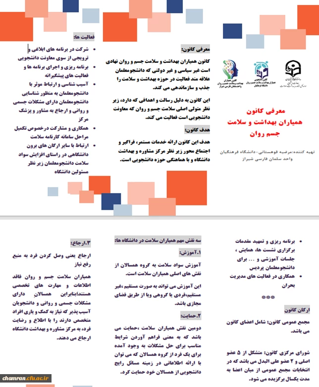 امتیاز دهید : معرفی کانون دانشجویی همیاران بهداشت و سلامت جسم و روان دانشگاه فرهنگیان 2 شنبه 20 اردیبهشت 1404 ساعت 13:10