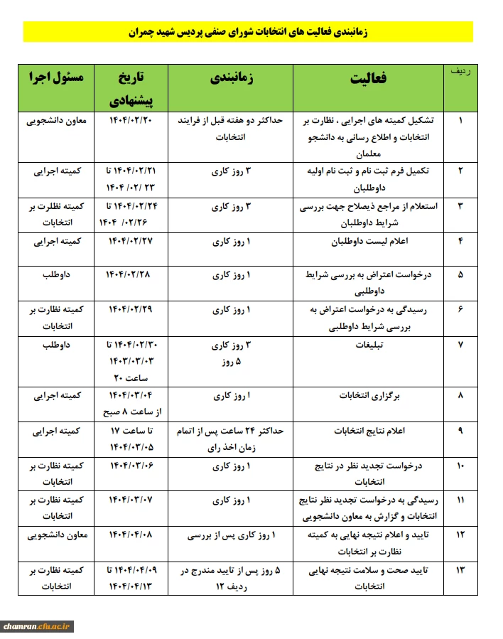 امتیاز دهید : بخشنامه و زمان بندی انتخابات شوراهای صنفی رفاهی ۱۴۰۴ 2 شنبه 20 اردیبهشت 1404 ساعت 13:57