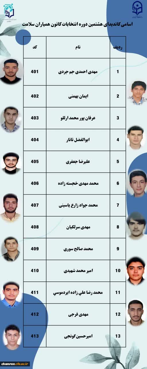 اسامی کاندیدهای تأیید صلاحیت شده هشتمین انتخابات کانون همیاران سلامت جسم و روان ۱۴۰۴–۱۴۰۳ 2