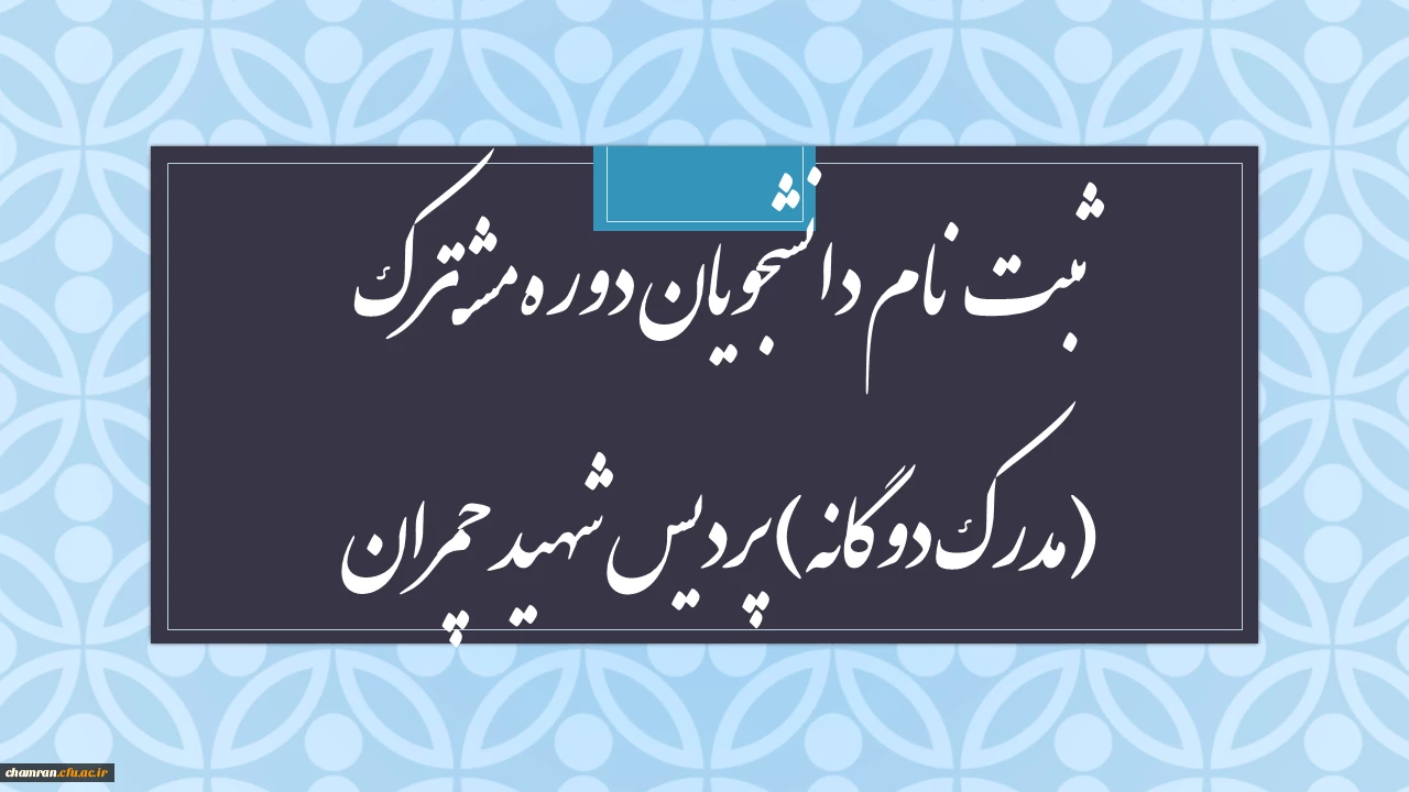 امتیاز دهید : ثبت نام دانشجویان دوره مشترک (مدرک دوگانه) پردیس شهید چمران 2 پنجشنبه 27 شهریور 1404 ساعت 13:29