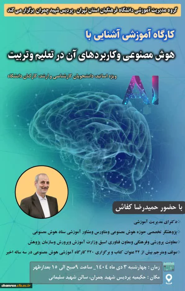 امتیاز دهید : کارگاه آموزشی «آشنایی با هوش مصنوعی و کاربردهای آن در تعلیم و تربیت» 2 سهشنبه 2 دی 1404 ساعت 19:27